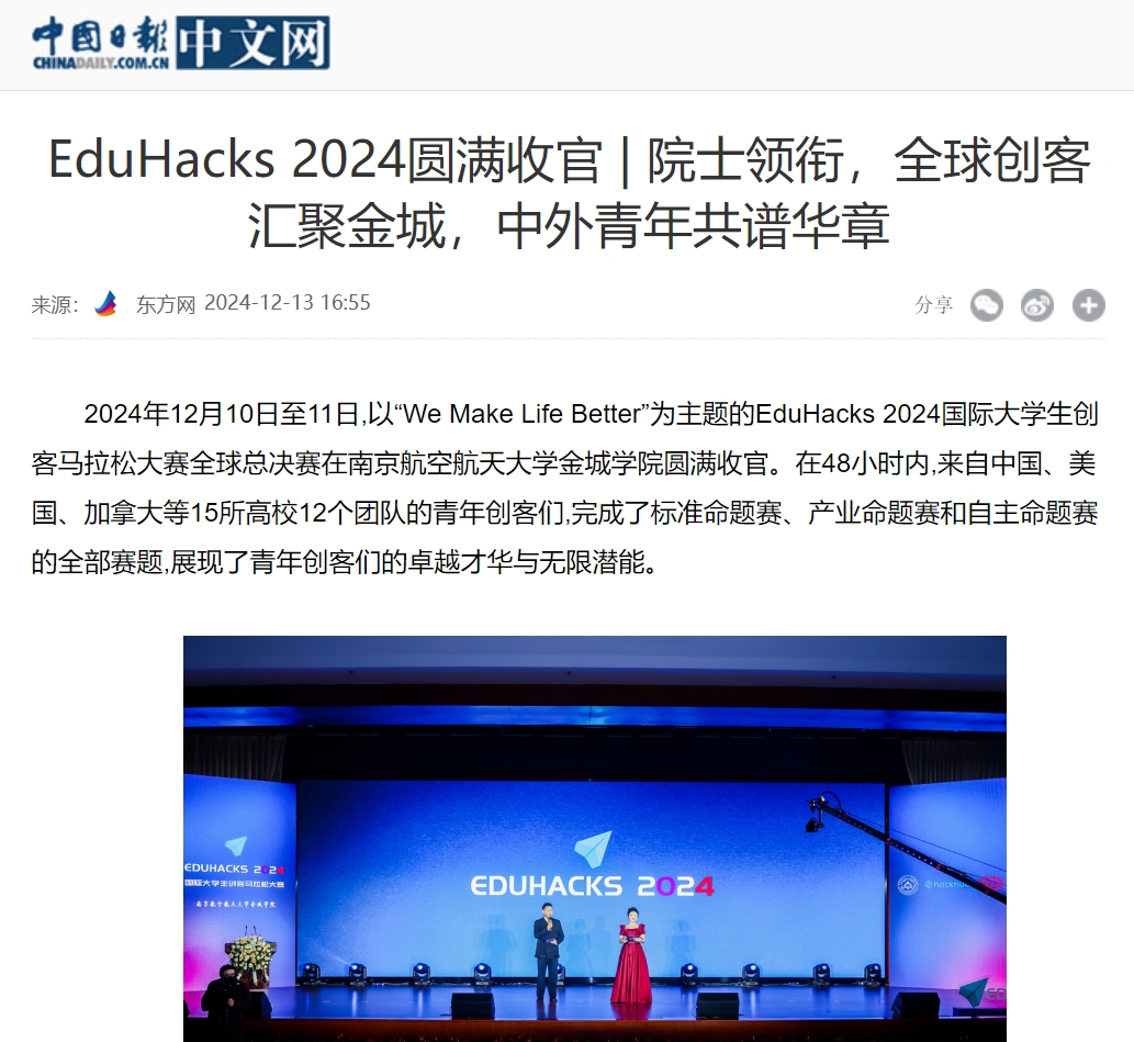 【中国日报网】EduHacks 2024圆满收官 | 院士领衔,全球创客汇聚金城,中外青年共谱华章