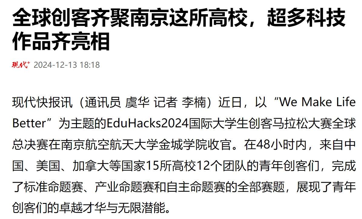 【现代快报】全球创客齐聚南京这所高校,超多科技作品齐亮相