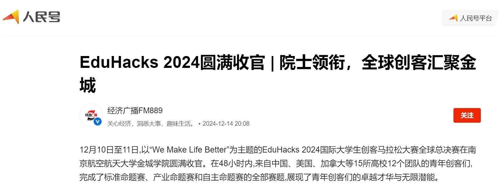 【人民日报客户端】EduHacks 2024圆满收官 | 院士领衔,全球创客汇聚金城,中外青年共谱华章