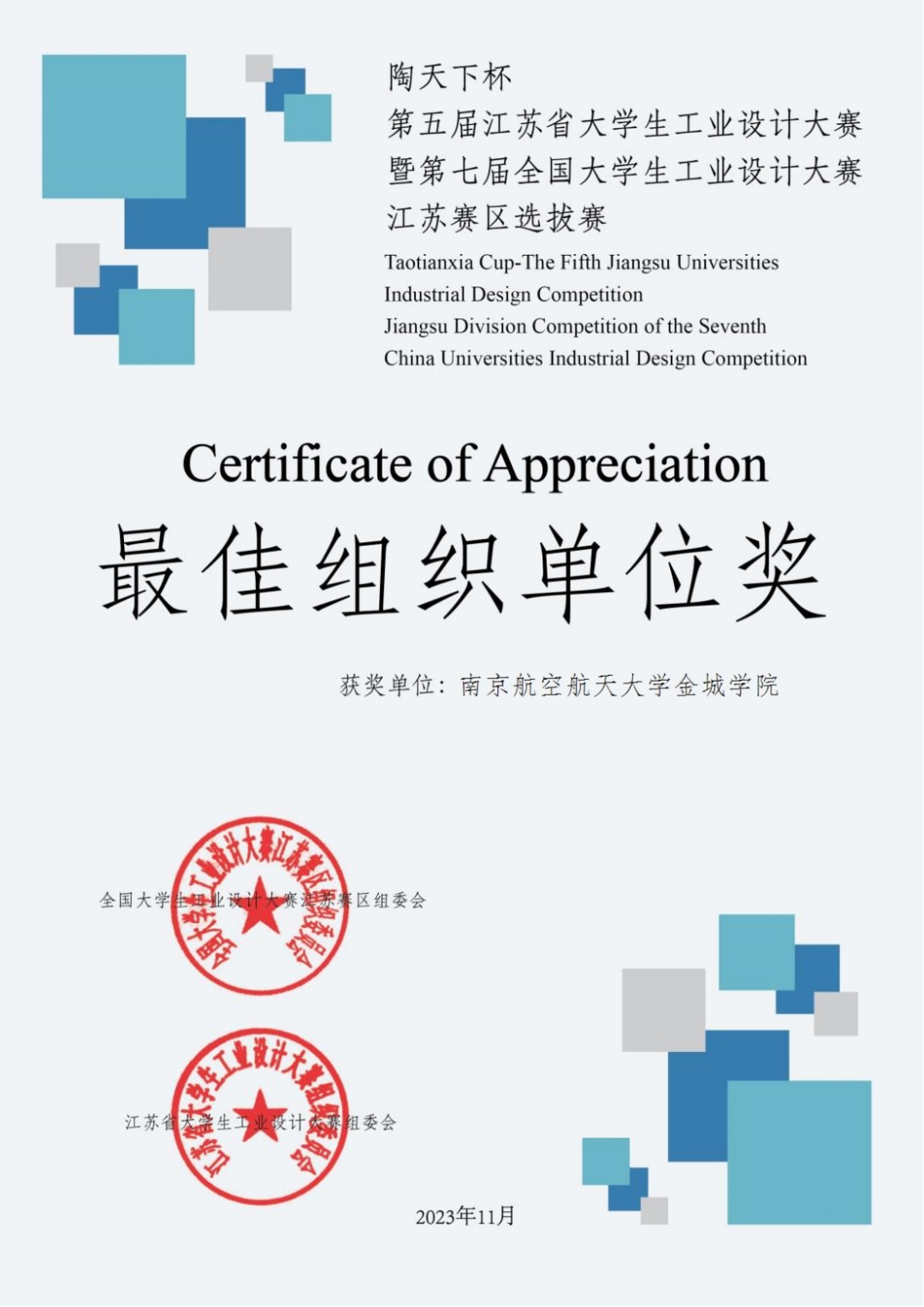 近日,“陶天下杯”第五届江苏省大学生工业设计大赛暨第七届全国大学生工业设计大赛江苏赛区选拔赛(JSUIDC)顺利结束,艺术与传媒学院工业设计及产品设计专业师生在此次大赛中取得了令人瞩目的成绩,荣获14项大奖。
