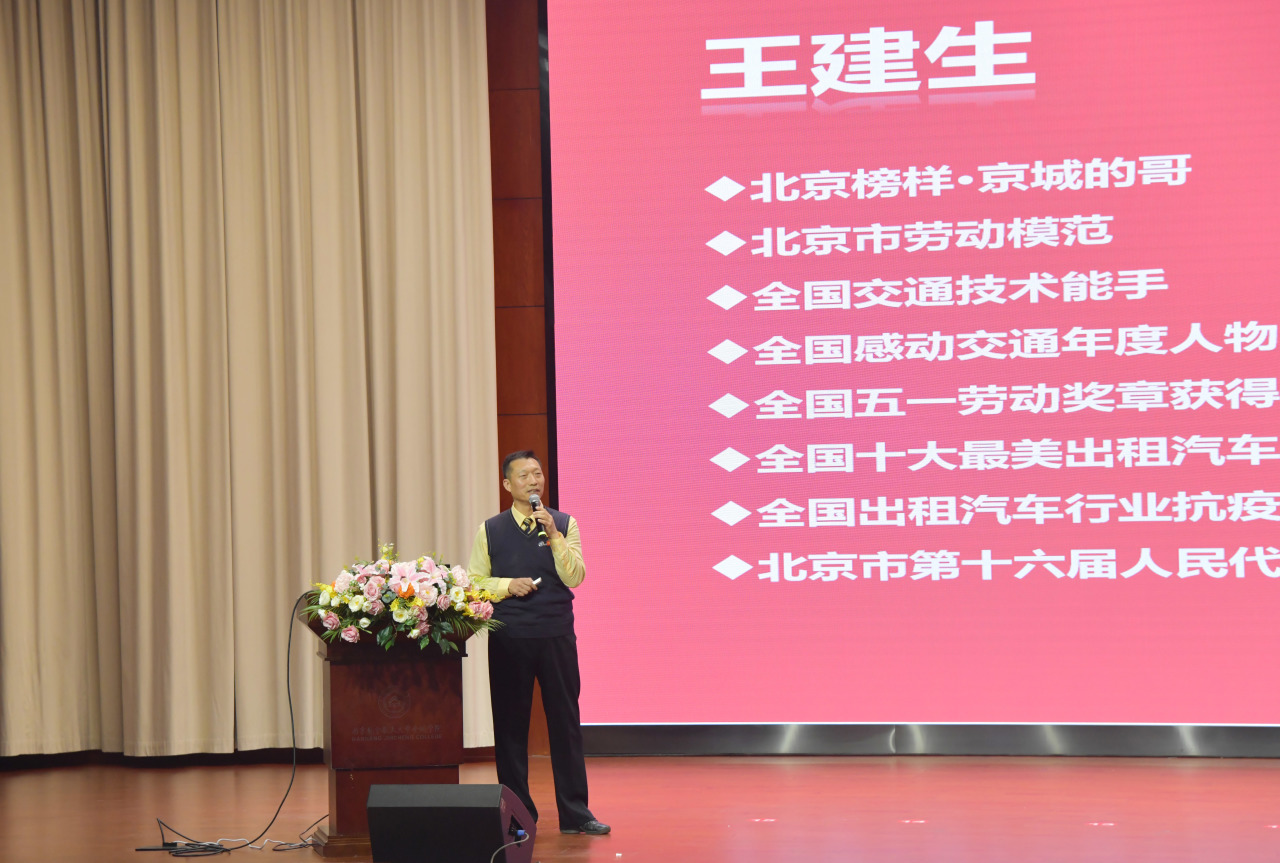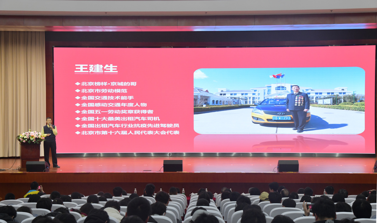 为大力弘扬劳模精神、劳动精神、工匠精神,进一步激发师生追寻榜样足迹,传承劳模工匠精神,3月15日下午两点,学校在图书馆206报告厅举办产业学院“劳模工匠进校园”活动,特邀全国五一劳动奖章获得者、北京市人大代表王建生作《从服务到享受——做到双赢》的主题报告。学校理事长曹忠葆,校长陈旭,副校长王萌,副校长郭建礼,党委副书记、副校长刘晓磊,校长助理刘向龙和线上线下6600多名师生一起聆听了他的报告。