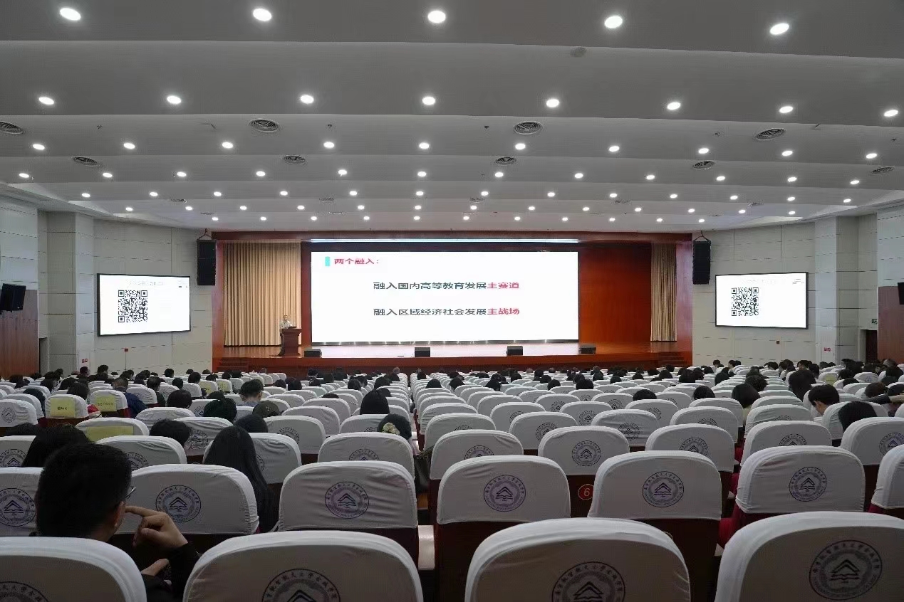 为进一步提升我校本科人才培养方案制定的科学性和合理性,将“学生中心、产出导向、持续改进”的理念深入融入人才培养方案的设计和实施中,提升专业建设能力与水平,提高学校本科专业人才培养方案修订质量,顺利推进学校2024版本科专业人才培养方案修订工作,近日,学校举办了OBE理念下专业人才培养方案修订专题讲座。校长陈旭、副校长王萌,各二级学院、教学科研处及相关科室工作人员,各二级学院教师等近300人聆听了讲座。讲座由校长陈旭主持。