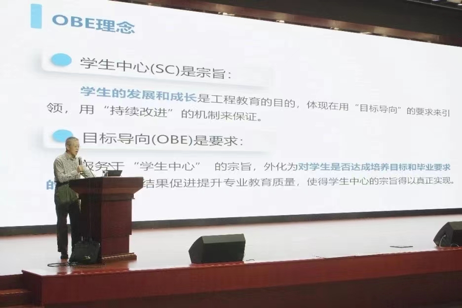 此次讲座的主讲人是机电工程与自动化学院崔汉国教授,他以《OBE理念下专业人才培养方案的修订》为题,从我校要融入国内高等教育主赛道,融入区域经济社会发展主赛道入手,全面阐述OBE理念,提出如何有效培养人,输送什么样的人。他指出,制定人才培养方案应遵循五项基本原则和三个核心概念,系统全面地讲解了OBE理念下的人才培养方案的修订步骤,科学解析了基于OBE理念的人才培养目标、毕业要求以及课程体系设置的路径。他详细介绍了在培养方案中如何体现学生为中心、如何体现产出导向、如何体现持续改进,如何科学合理地体现毕业要求对培养目标的支撑度、毕业要求与课程体系的关联度矩阵、毕业要求达成与课程支撑权重,如何将创新创业融入人才培养全过程等,这些为我校修订OBE导向的人才培养方案明晰了思路和流程。