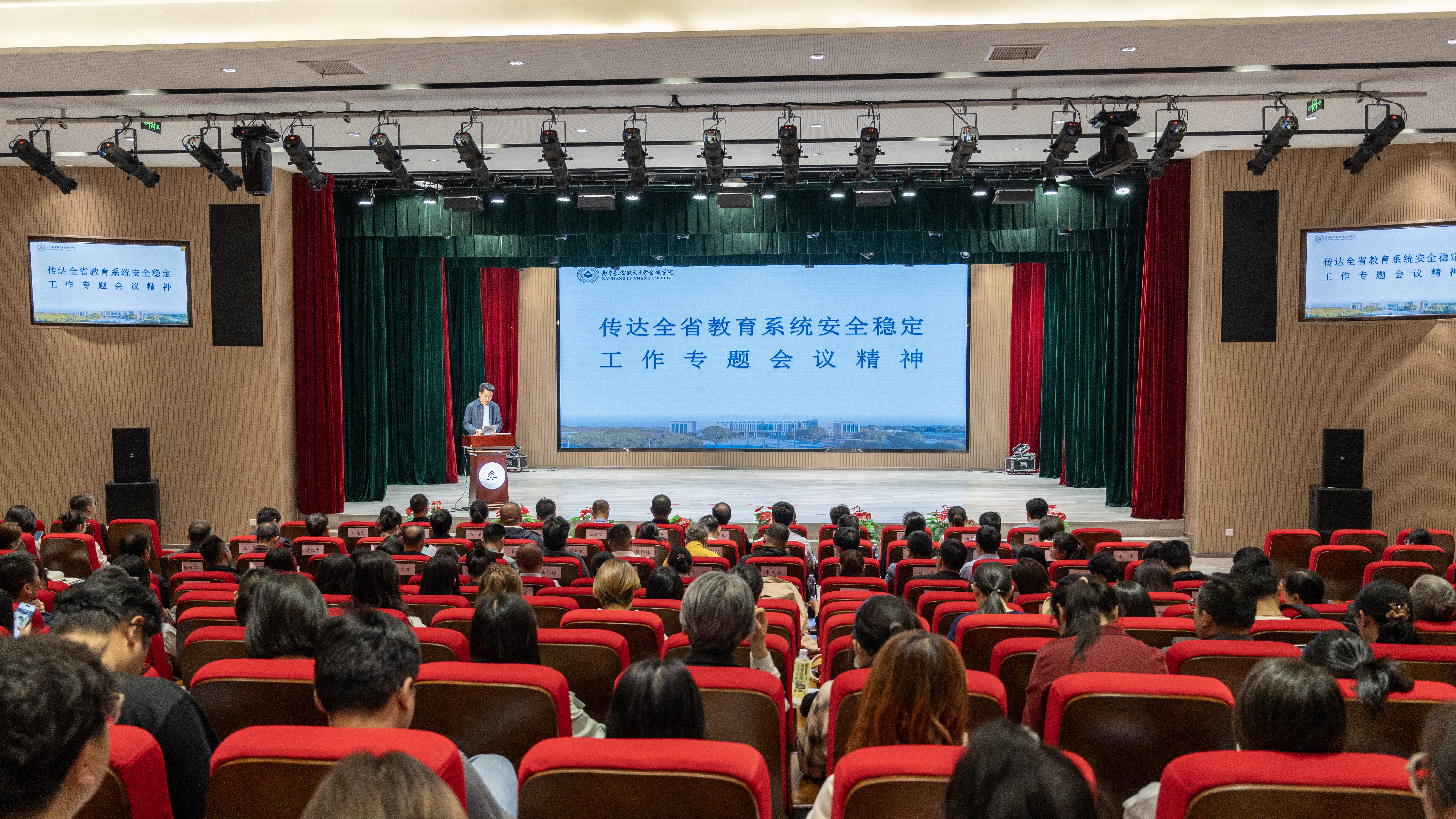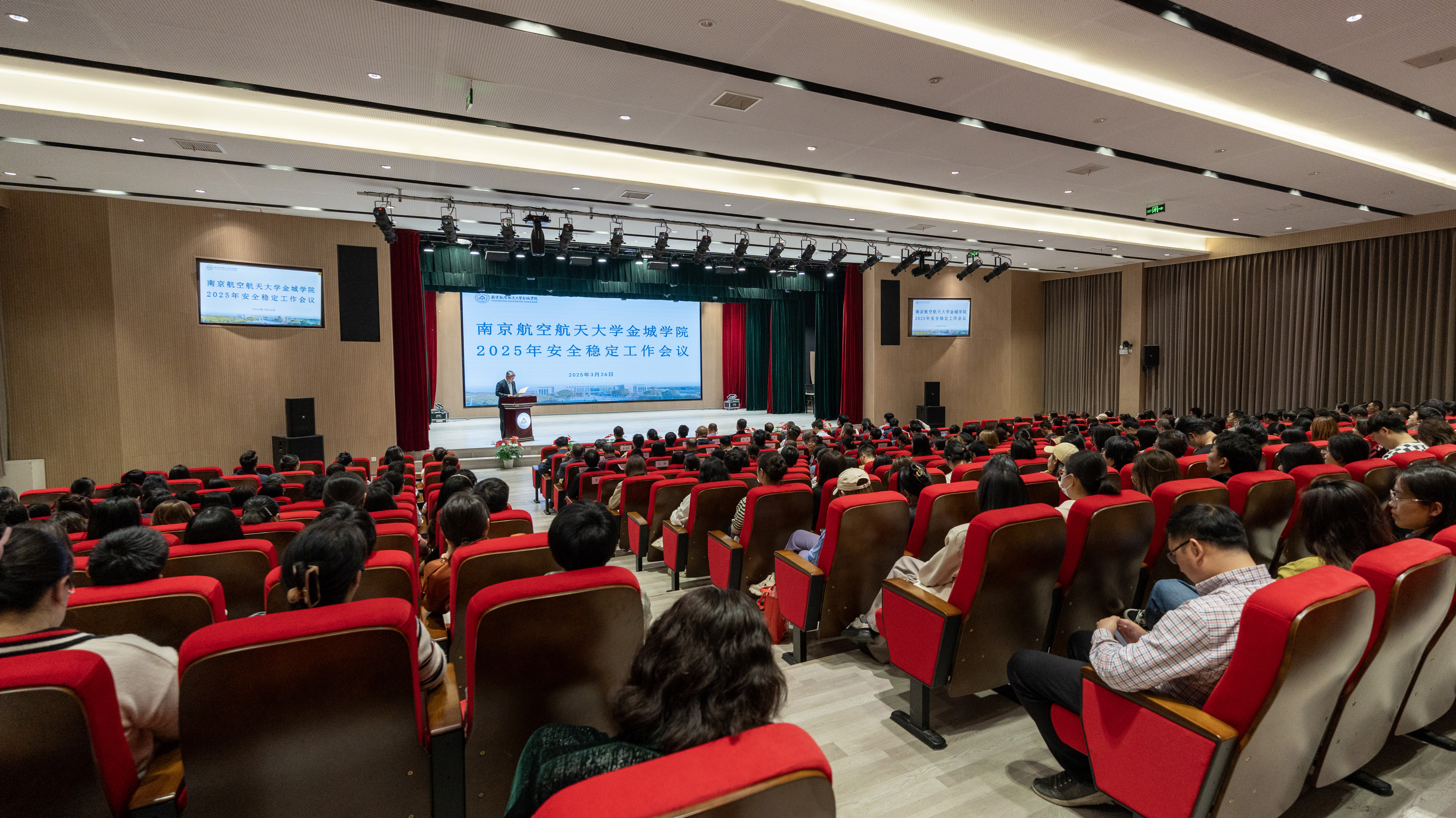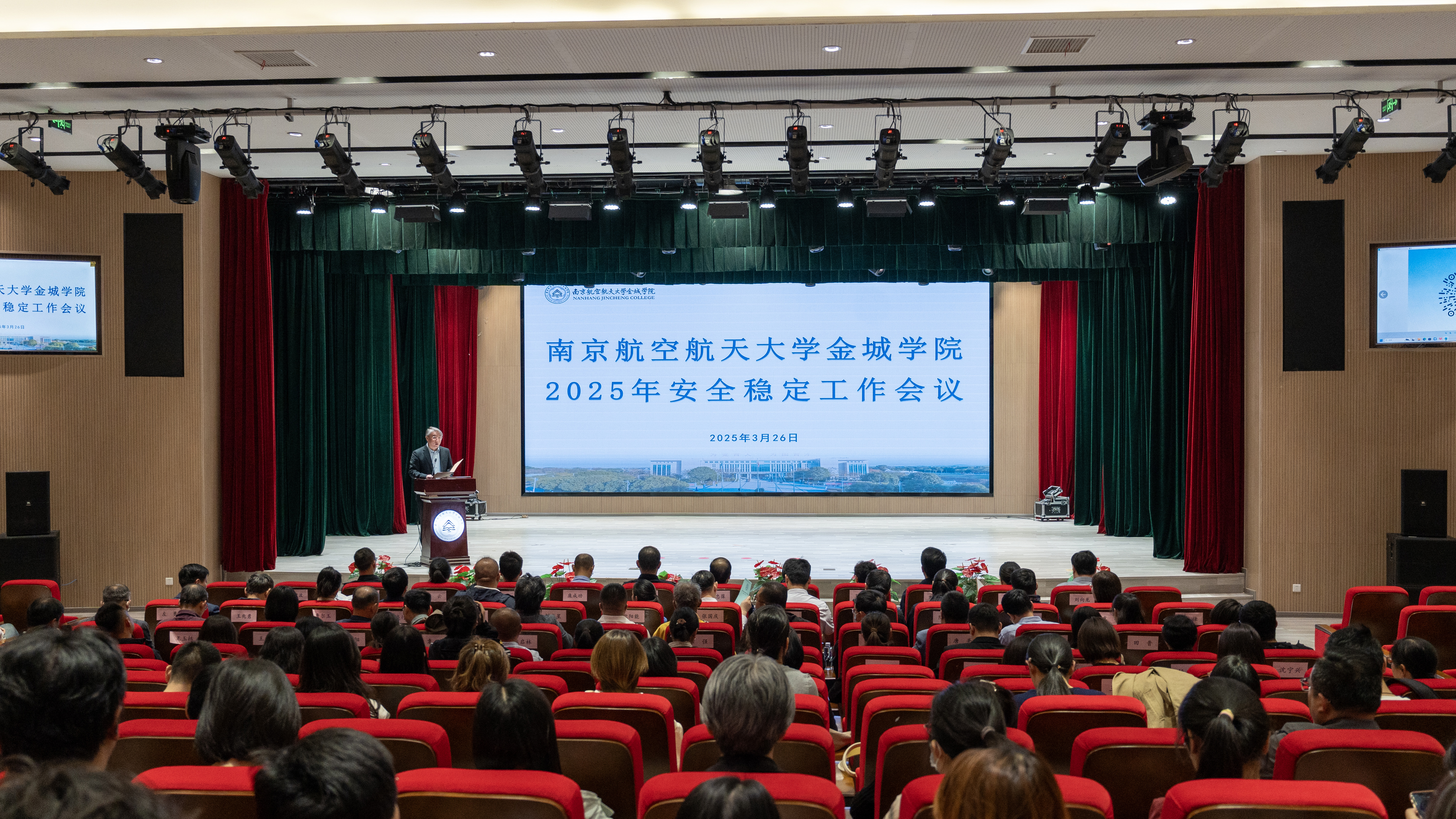 安全稳定是发展之基、民生之本,事关全校广大师生员工的切身利益,事关学校事业发展大局,事关社会和谐稳定。2025年3月26日下午,学校在明德楼200报告厅召开2025年安全稳定工作会议。学校邀请到属地安全共建单位铜山派出所教导员左峰、禄口交警中队教导员庞成功、第七侦查专业队副中队长杨俊、禄口司法所肖云、驻校民警童传国出席会议。学校理事长曹忠葆,全体校领导,机关职能部门全体人员、教学单位相关人员、全体实验员、教研室主任和全体辅导员参加会议。会议由副校长伍建波主持。