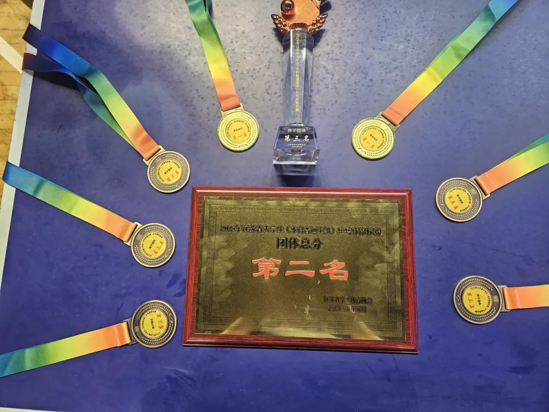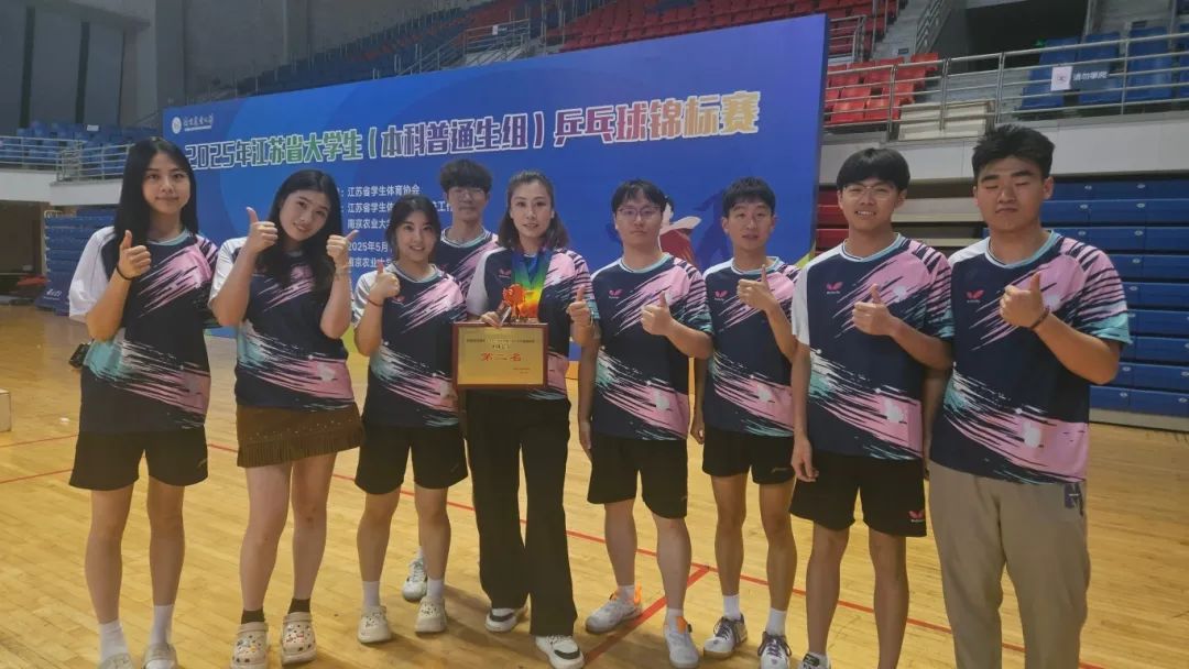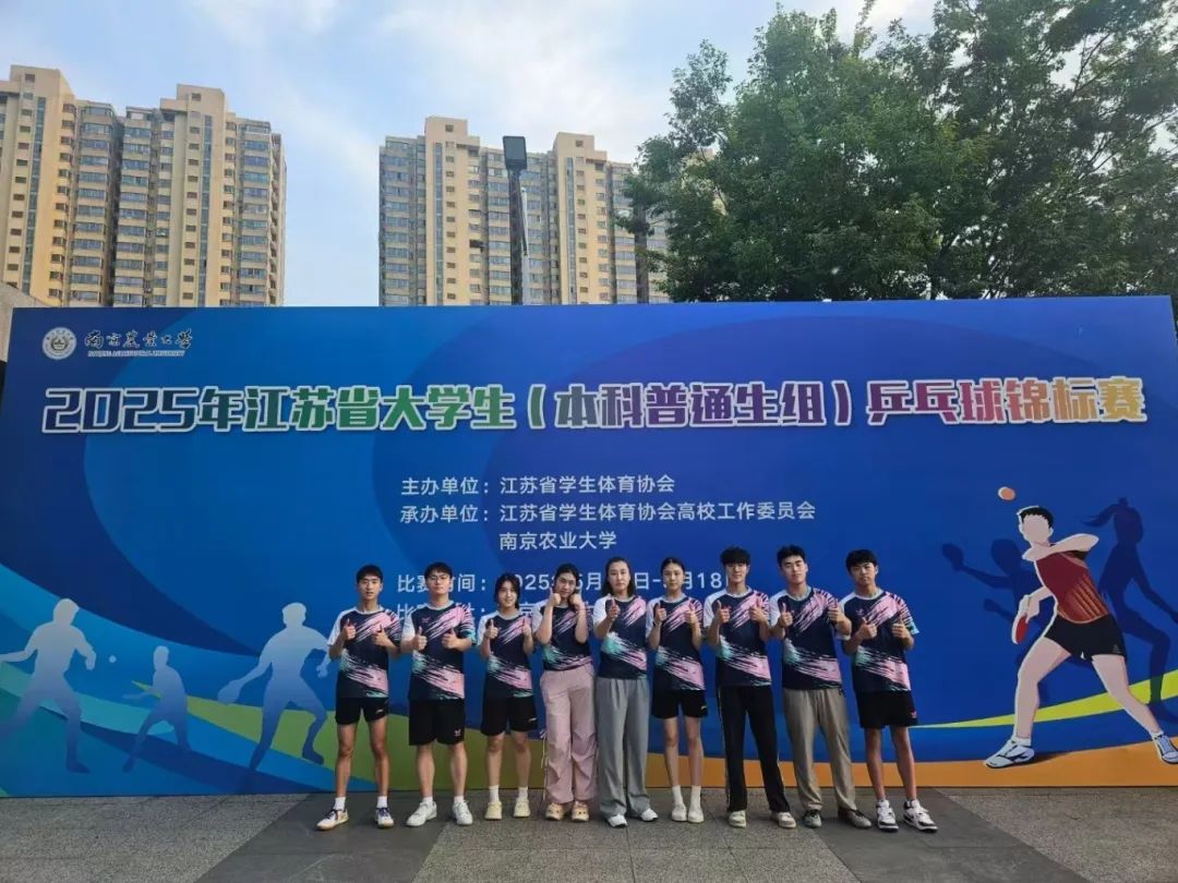 5月14日至18日,2025年江苏省大学生(本科普通生组)乒乓球锦标赛在南京农业大学圆满落幕。本届赛事汇聚全省46所高校的460余名运动员同台竞技,竞争激烈程度再创新高。我校乒乓球队在领队任翔、主教练毛佳佳的带领下表现亮眼:翟骏桐与胡以宁组合勇夺混双冠军,翟骏桐、胡以宁分获男女单打第六名,男双(张涵/翟骏桐)、女双(胡以宁/俞佳玉)分列第六和第四名,男团、女团则斩获第三名与第六名,最终以团体总积分第二名的优异成绩圆满收官。值得一提的是,我校成为本届赛事唯一一所所有参赛项目均挺进八强的院校,展现出全面均衡的竞技实力。