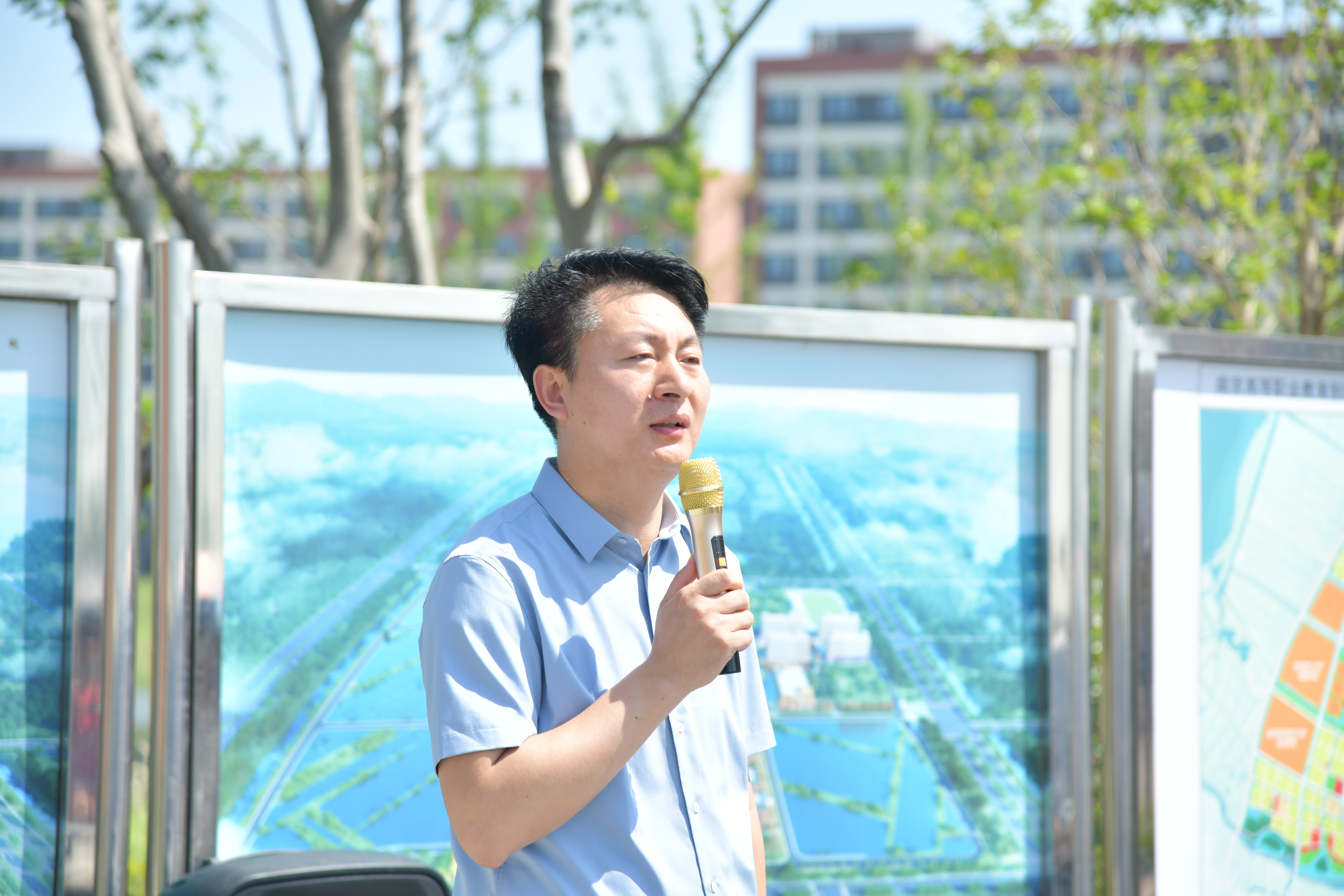 走进高淳校区,副校长郭建礼满怀激情地向大家介绍了高淳校区的总体建设情况。他表示,高淳校区一期项目是我校备受瞩目的重大校园建设工程,自2023年6月奠基以来,经过全校上下的共同努力和建设者的辛勤付出,目前已进入收尾阶段,当前正按计划有序推进各项收尾及验收工作。