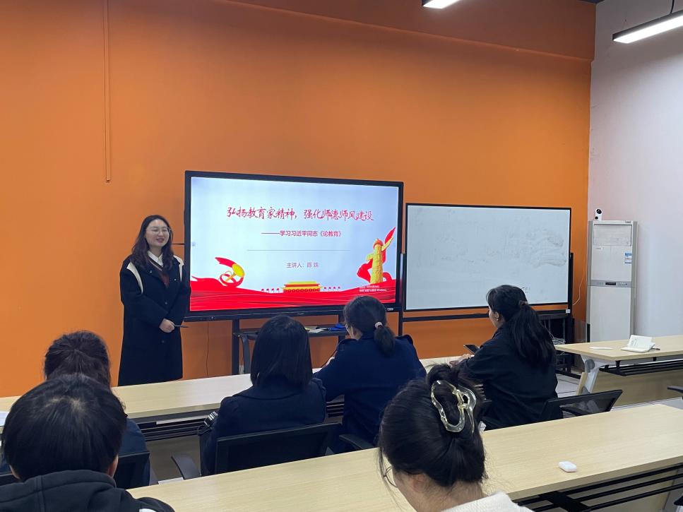 为学习贯彻全国教育大会精神,深入学习习近平总书记关于教育的重要论述,2024年11月20日,机电工程与自动化学院党总支在A3-108开展习近平同志《论教育》理论专题集中学习,本次活动邀请了陈姝副教授讲授以“弘扬教育家精神,强化师德师风建设”为主题的党课。活动由学院党总支书记田晋主持,全体教师参加。
