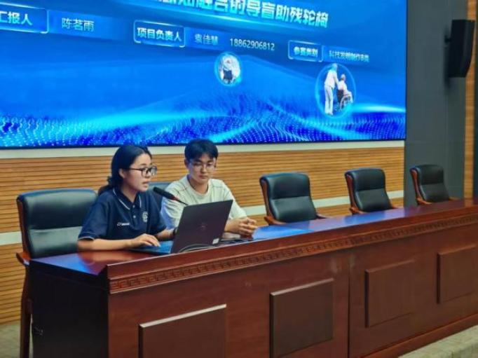 活动中,项目组负责人零度科创团队学生陈茗雨围绕“技术核心+转化需求”主线,在5分钟内清晰阐述了项目的关键技术与发展愿景。她详细介绍了导盲助残轮椅所采用的多模态感知融合技术,展示了该设备在辅助视障人士实现安全出行与自主生活方面的实际成效与应用场景,并就项目当前进展、后续规划以及在技术优化与市场对接等方面面临的挑战与需求作了说明。