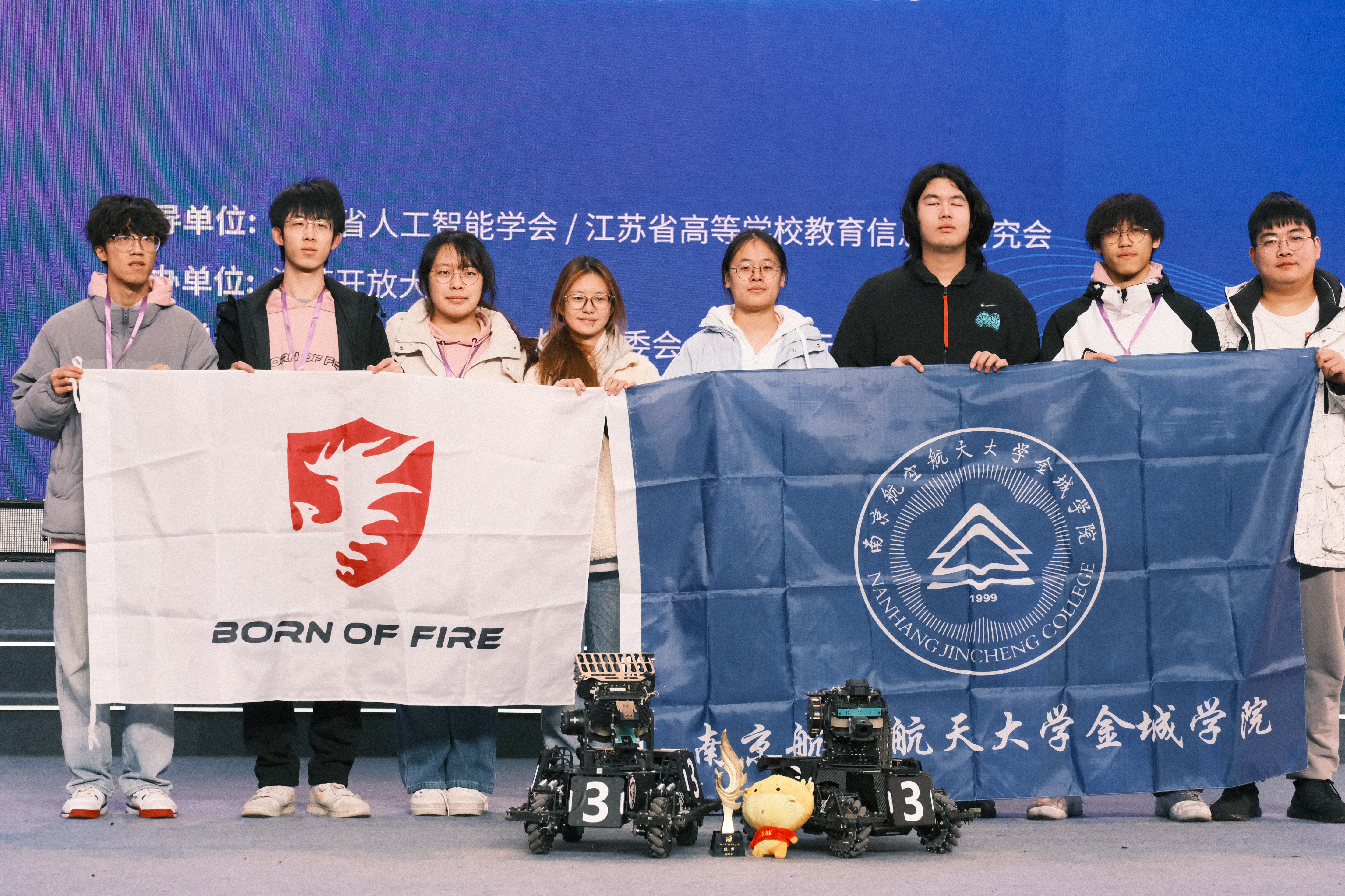2024年12月20日-22日,小电影 BOF机器人科创团队在刚刚结束的江苏省“开大杯”机器人大赛暨高校机器人对抗赛决赛中,荣获RoboMaster机器人2V2对抗赛冠军。在本次的RM2V2对抗赛中,我校BOF机器人战队选用新设计的“麦轮双子”步兵机器人,一路过关斩将,在初赛循环赛和决赛的场次中均以2:0的不败成绩,战胜了江苏所有参赛的高校RM战队,最终荣获冠军。